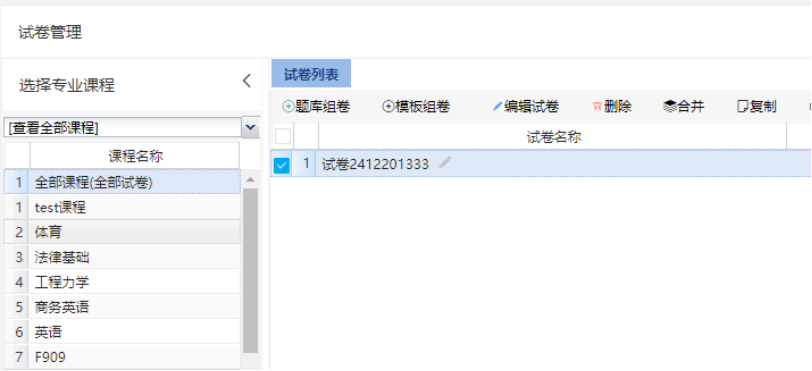 右侧为已经安排的考试列表,以及对考试操作功能
