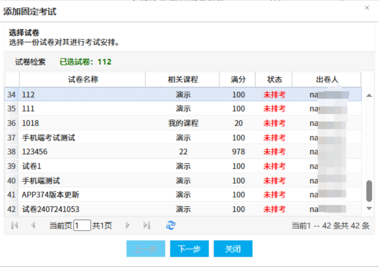 添加固定考试前必须至少有一份试卷可供选择,否则无法安排考试: