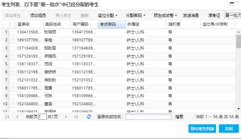 随机考试考生管理请参考上面固定考生管理说明。