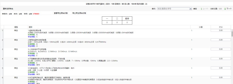 点击主界面上“批改试卷”,选择试卷进行试卷批改。